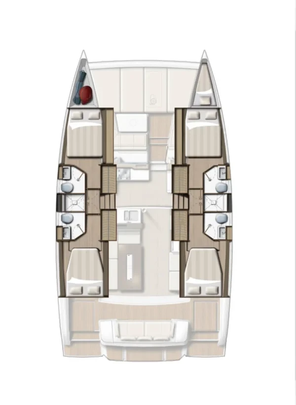 This catamaran is equipped with everything necessary for a comfortable vacation, including 4 toilets with shower, bed linen and pillows. You can check the list of all equipment below.