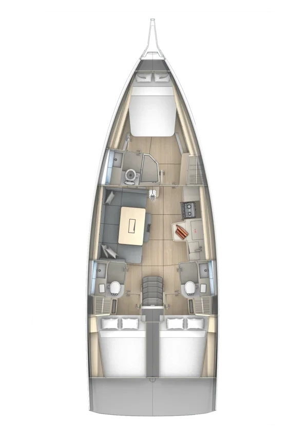 3-cabins sailing yacht Dufour 41 "Amunì" can accomodate up to 8 people.