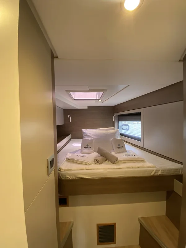 A 46–48 ft catamaran offers an exceptional balance of space and comfort. The wide design creates expansive outdoor areas perfect for lounging, dining, and enjoying the open sea. The interior features bright panoramic views, spacious cabins, and a modern saloon that becomes the social center of the yacht. Stable, comfortable, and easy to enjoy, this catamaran size is perfect for relaxed cruising with family or friends.