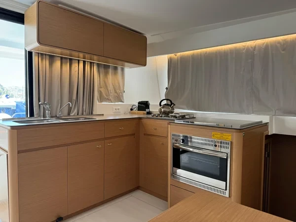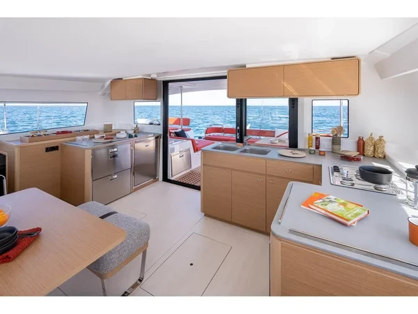 A 46–48 ft catamaran offers an exceptional balance of space and comfort. The wide design creates expansive outdoor areas perfect for lounging, dining, and enjoying the open sea. The interior features bright panoramic views, spacious cabins, and a modern saloon that becomes the social center of the yacht. Stable, comfortable, and easy to enjoy, this catamaran size is perfect for relaxed cruising with family or friends.