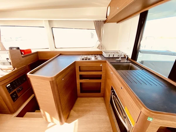 A 40–42 ft catamaran is a great choice for those seeking comfort, efficiency, and ease of handling. Its well-balanced design offers a stable and smooth sailing experience, making it ideal for both short getaways and longer trips at sea. The layout provides cozy outdoor areas for relaxing and enjoying the view, along with a practical cockpit for dining and socializing. Inside, thoughtfully designed cabins and a bright saloon create a comfortable and inviting space on board. This size catamaran is perfect for intimate cruising with family or friends while still offering all the essentials for a pleasant journey.