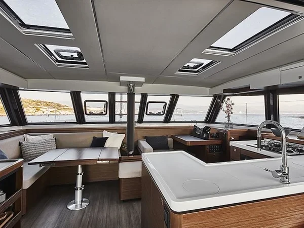 A 46–48 ft catamaran offers an exceptional balance of space and comfort. The wide design creates expansive outdoor areas perfect for lounging, dining, and enjoying the open sea. The interior features bright panoramic views, spacious cabins, and a modern saloon that becomes the social center of the yacht. Stable, comfortable, and easy to enjoy, this catamaran size is perfect for relaxed cruising with family or friends.