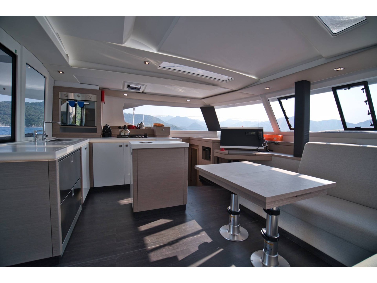 A 46–48 ft catamaran offers an exceptional balance of space and comfort. The wide design creates expansive outdoor areas perfect for lounging, dining, and enjoying the open sea. The interior features bright panoramic views, spacious cabins, and a modern saloon that becomes the social center of the yacht. Stable, comfortable, and easy to enjoy, this catamaran size is perfect for relaxed cruising with family or friends.