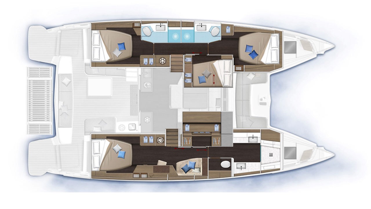 5-cabins Katamaran Lagoon 51 „ELOYA RAY “ bietet Platz für bis zu 10 Personen.